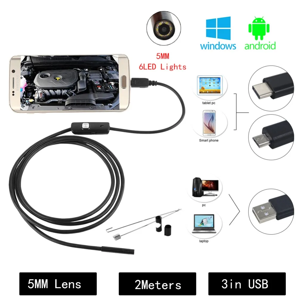Hot Offer 5.5mm USB Endoscope Camera 3 in 1 Android Endoscope With 6 LED 1/1.5/2m Waterproof Inspection Borescope For Android PC Type C
